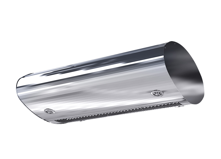 Интерьерная тепловая завеса Эллипс Бриллиант для проемов высотой до 3,5 метров. Благодяря верхнему всасыванию воздуха, передняя панель завес из нержавеющей стали остается всегда чистой.