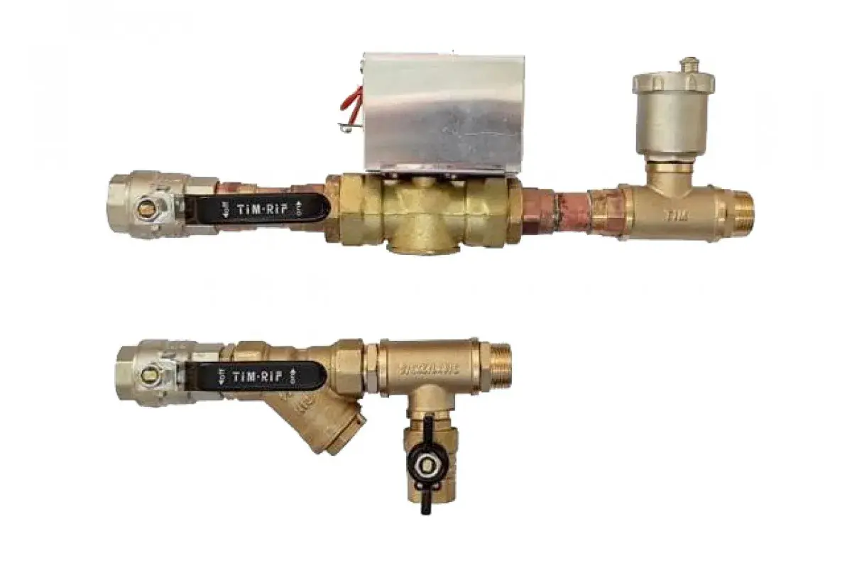 Комплект для подключения 7 в 1 (SUR) для CR и CR ONE используется в тепловентиляторах с водяным источником тепла CR и CR ONE, выполняя функцию смесительного узла терморегулирования. Он имеет диаметр подключения 3/4", комплектуется гибкой подводкой, а также может выдерживать температуру +130 °C и давление до 1.2 МПа. Пропускная способность клапана составляет 2.6 м3/ч. В состав комплекта входят: двухходовой клапан с сервоприводом, 2 шаровых крана, фильтр грубой очистки, воздухоотводчик, а также сливной кран.